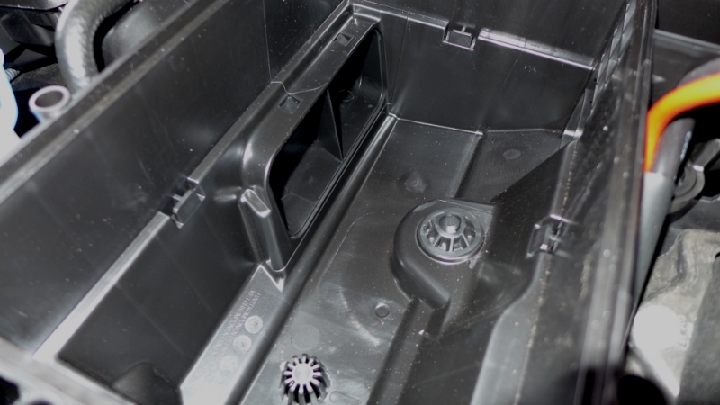 Now you should see the snow guard that was below the filter. There are four points all the way around in the middle-ish on each side of the snow guard where its snug. I took a pair of pliers and pull straight up on the drivers side one to loosen it.